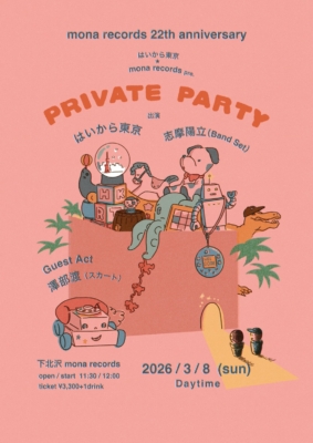 2026.3.8 SUN @ 東京都・下北沢mona records 『はいから東京×mona records 22th anniversary pre. “Private Party”』